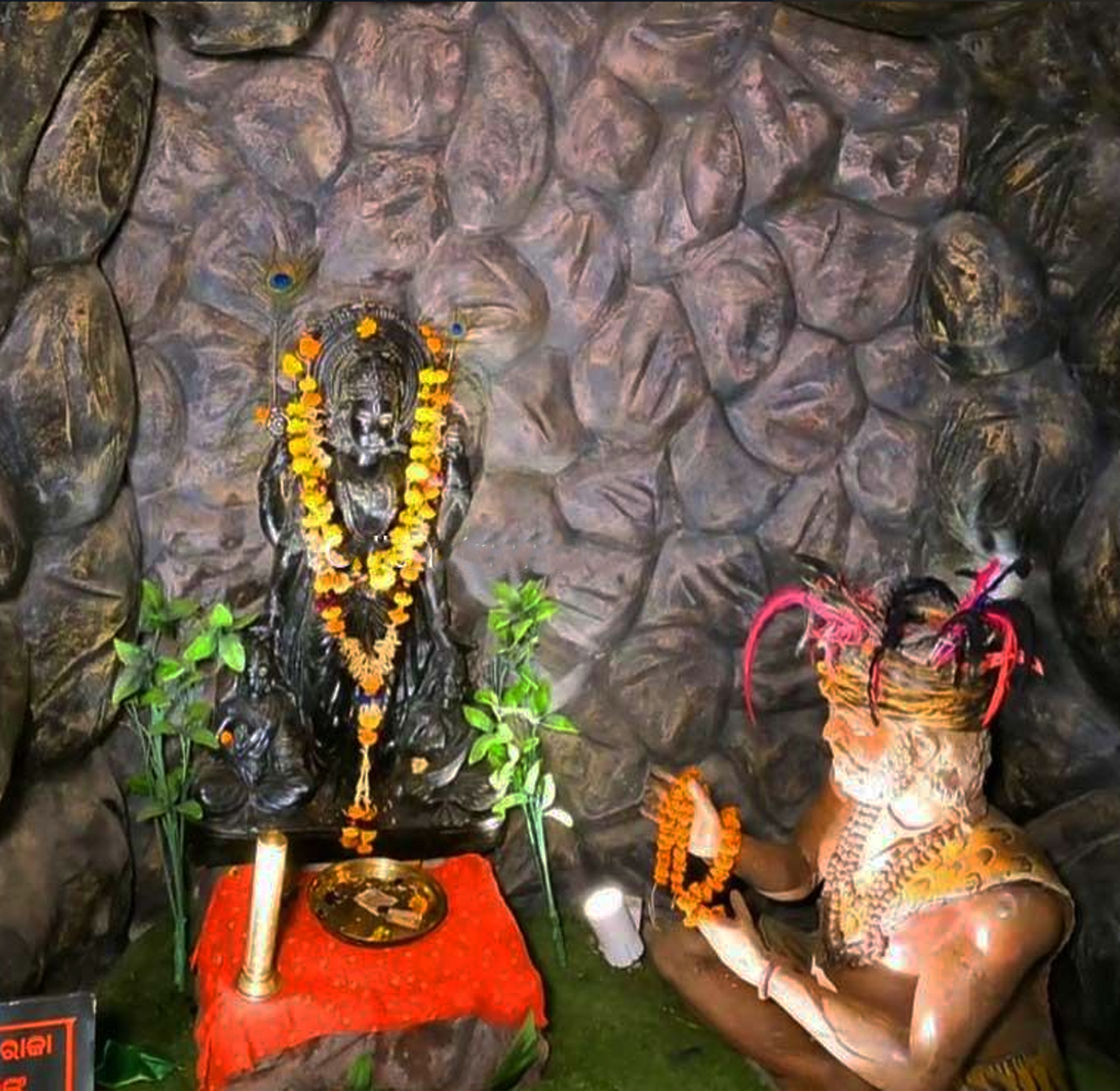 At repeated request of Vidyapti, Viswavasu took his son-in-law blind folded to a cave where Neelamadhab was worshipped.
